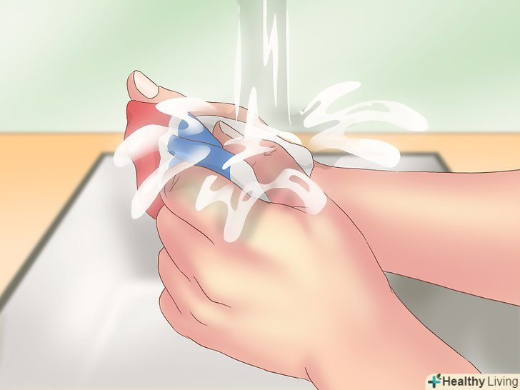 Намочіть носок. використовуючи сухі махрові шкарпетки, можна легко видалити пил з забрудненої поверхні. Однак якщо у вас немає махрового носка, використовуйте звичайний, намочивши його у воді. Потримайте носок під струменем води. Також можна використовувати поліроль для меблів. Не використовуйте багато води або миючого засобу для меблів. Носок повинен бути злегка вологим.