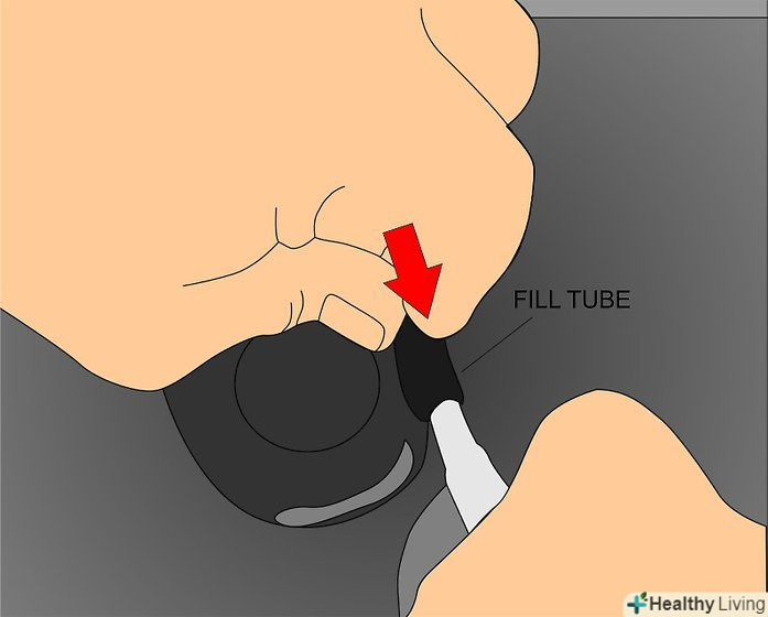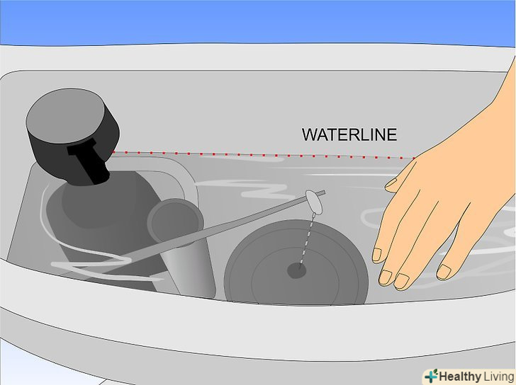 - Вручну потягніть поплавок вгору. Якщо вода припинить витікати, тоді потрібно відрегулювати рівень поплавка таким чином, щоб бачок припиняв наповнюватися, коли рівень води на 2,5 см нижче верху переливної трубки. Якщо рівень води в бачку занадто високий, надлишковий тиск може привести до протікання води через заслінку (навіть якщо встановити нову заслінку).