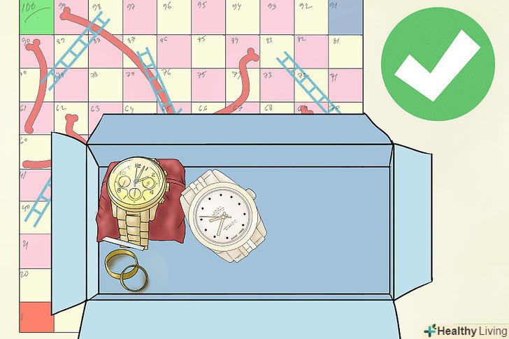 Складайте речі в стару коробку від настільної гри. якщо у вас є непотрібна настільна гра, то звільніть коробку і складіть в неї цінні речі. Приберіть коробку в шафу.- Коробки від настільних ігор вміщують досить великі предмети.