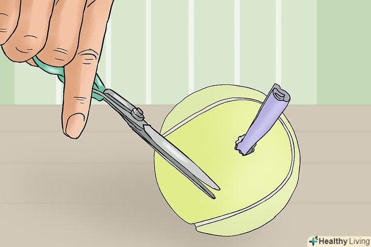 Зберігайте дрібні речі в тенісному м'ячику. за допомогою ножиць акуратно надріжте тенісний м'яч. Стисніть м'яч, щоб розширити дірку, потім помістіть всередину невеликий предмет. М'яч слід прибрати в непримітне місце на зразок задньої стінки шафи, під ліжко або ДО ІНШИХ спортивним приладдям. [10]- Знову стисніть м'яч, щоб розширити діру і витрусити таємний предмет. Якщо він застряг, витягніть його пальцями або щипцями.