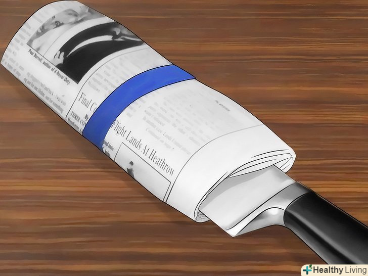 Використовуйте інші матеріали. Якщо у вас немає картону або пухирчастої плівки, можете використовувати газету, старий одяг або будь-який інший матеріал, який можна без праці обернути навколо леза. Просто загорніть ніж в кілька шарів наявних матеріалів. При необхідності, зафіксуйте матеріал скотчем.