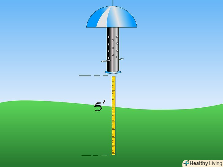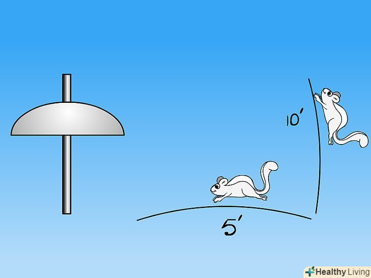 - Для установки годівниці таким чином найпростішим рішенням є підпори. Ви можете використовувати або прямий жердину, або жердину пастуха, просто переконайтеся, що він досить високий. Помістіть жердину в десяти футах (3 метри) від будь-яких дерев, паркану або інших об'єктів, звідки білка може стрибнути. Встановіть перегородку на жердині в п'яти футах (1,5 метра) від землі.