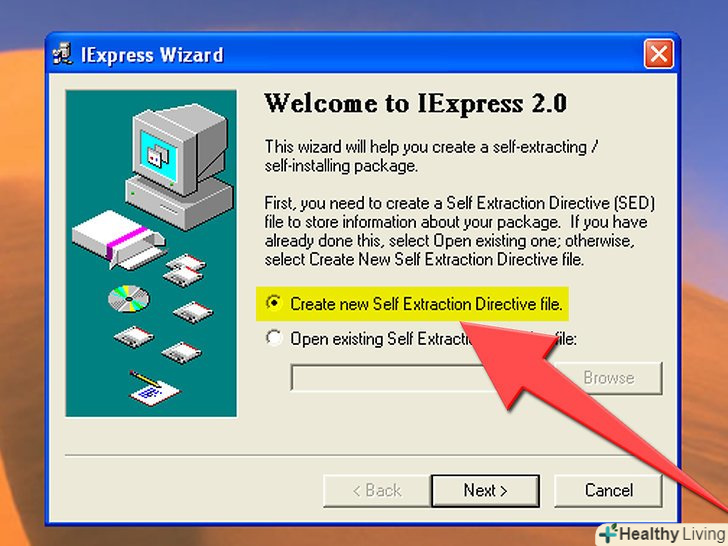 Якщо у вас є .sed файл, у вікні виберіть «відкрити існуючий SED»; в іншому випадку відзначте "створити SED «і натисніть»Далі".- Тут необхідно задати кінцеву мету створеного файлу.