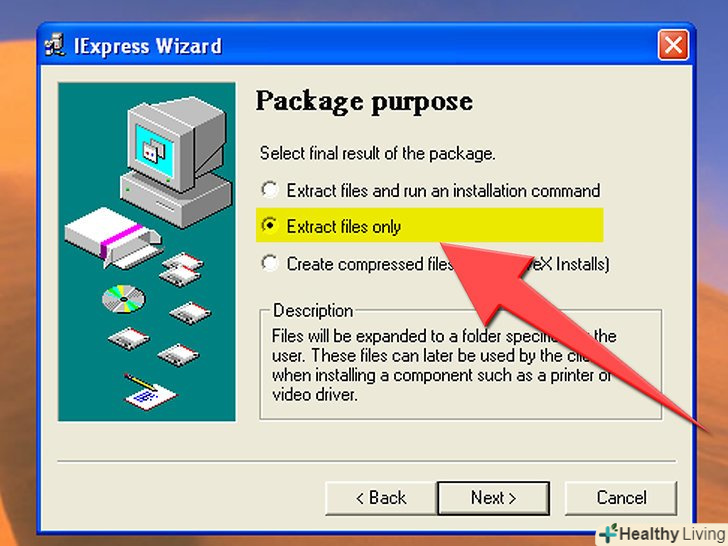 - Якщо ви хочете, щоб файли були вилучені в папку, створену інсталятором, відзначте першу опцію і натисніть "Далі".