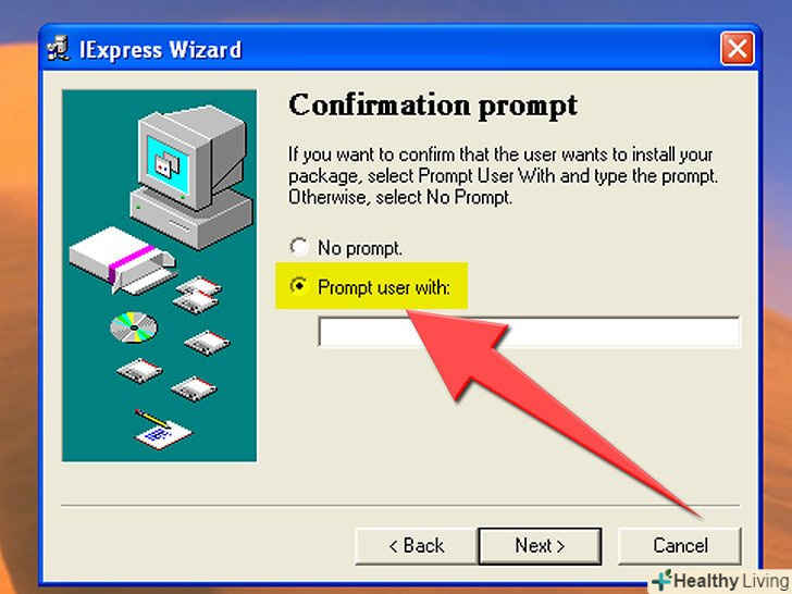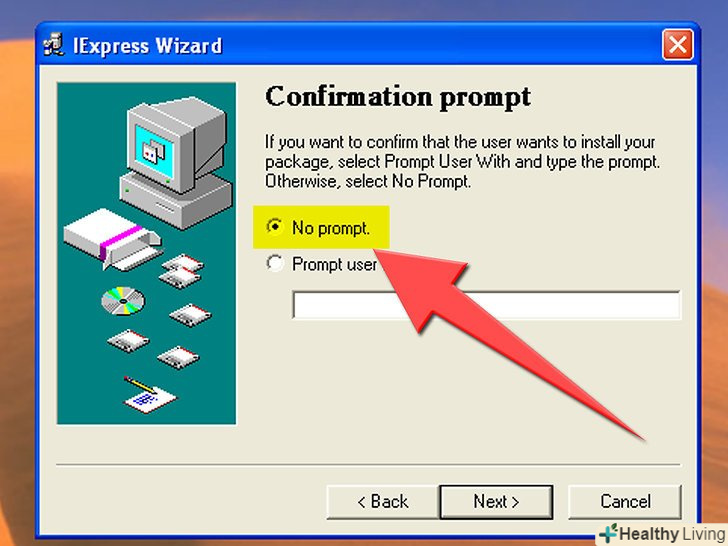 Введіть назву інсталяційного файлу і натисніть "Далі".- Тепер виберіть, чи буде інсталятор запитувати підтвердження користувача про встановлення Програми.