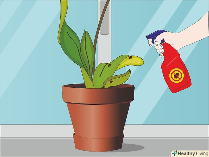 Якщо від проблем не вдається позбутися, обробіть орхідеї інсектицидом. якщо ви видалили шкідників і відмили листя мильним розчином, але ознаки зараження все ще зберігаються, купіть в місцевому магазині садових товарів інсектицид. Попросіть продавця підібрати вам засіб, яким можна безпечно обробити орхідеї. Застосовуйте обраний засіб згідно з інструкцією на його упаковці. [15]