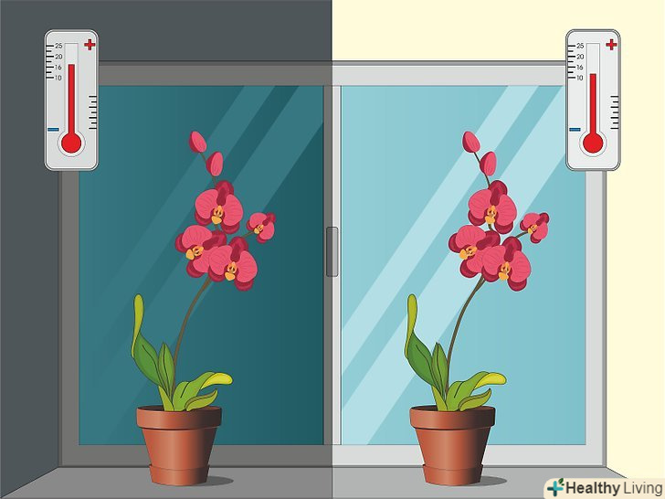 Підтримуйте вдома температуру близько 16-24 °C. орхідеї благополучно себе почувають при помірній температурі і гинуть, якщо їм занадто холодно. Незважаючи на те, що конкретні температурні вимоги можуть дещо відрізнятися у різних видів орхідей, в цілому, ночами температура не повинна опускатися нижче 16 градусів. А вдень температура повинна бути на 5-8 градусів вище нічної. [4]