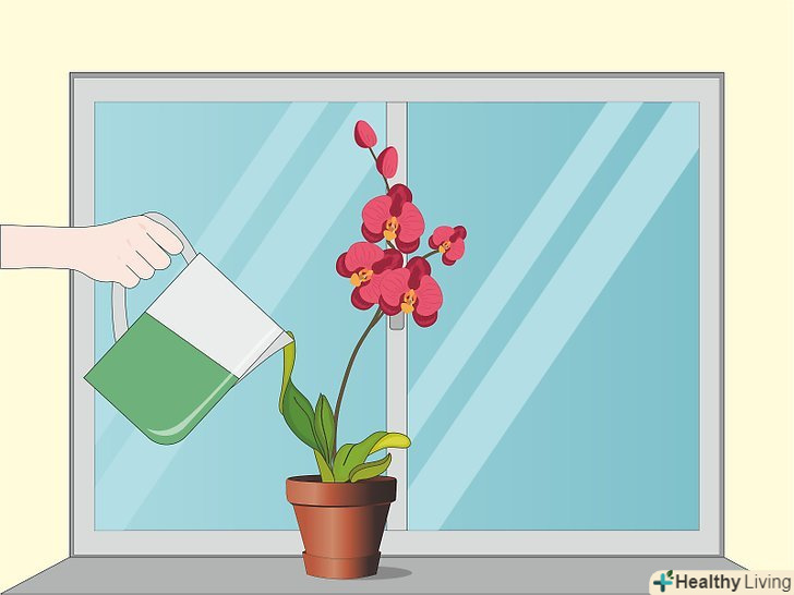 Удобрюйте орхідеї раз на місяць в період цвітіння. користуйтеся збалансованим рідким добривом, наприклад, з пропорціями мікроелементів 10-10-10 або 20-20-20. Готуйте з добрива в два рази слабший розчин і підгодовуйте їм орхідеї в період цвітіння. Чи не поливайте орхідеї протягом декількох днів після підгодівлі, інакше вода буде змивати поживні речовини. [9]- Після цвітіння зростання зеленої маси рослини зупиниться. У цей період орхідеї менше потребують поливу і добривах, поки знову не почнеться стадія активного росту.