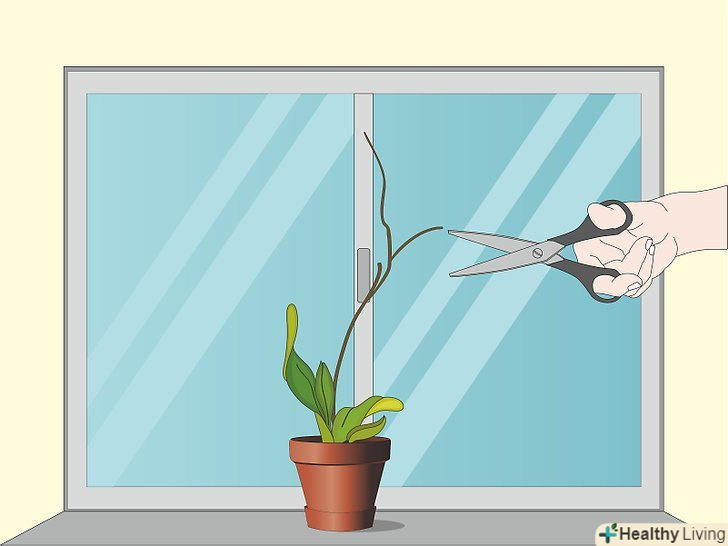 Зрізайте відцвілі квітконоси. орхідеї не цвітуть більше одного разу на одному квітконосі (за винятком фаленопсисів). Якщо у вас ростуть фаленопсиси, зрізайте квітконоси над двома нижніми нирками або вузлами, коли останні квіти засохнуть. [10] у видів орхідей з псевдобульбами зрізайте квітконоси трохи вище псевдобульби. [11] У інших орхідей квітконоси слід зрізати якомога ближче до субстрату. [12]- Псевдобульба — наземне потовщення стебла орхідеї в його підставі.