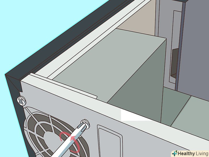 Зніміть кожух системного блоку. Відкрутіть шурупи кріплення блоку живлення. Не втратьте шурупи.