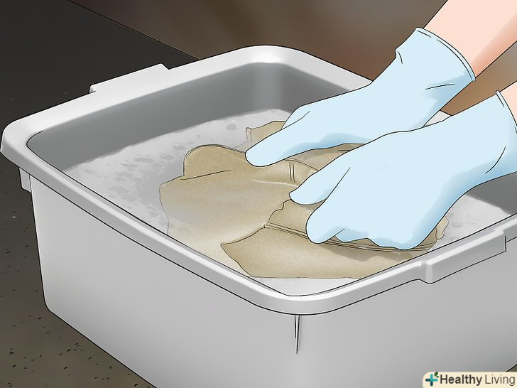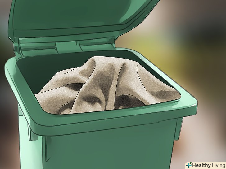 Викиньте заражені тканини і одяг. якщо жуки сильно пошкодили будь-яку тканину, викиньте її в сміттєвий бак на вулиці. Якщо ви залишите такі предмети в будинку, вам складніше буде позбутися від зараження. [3]- Викиньте сильно пошкоджену тканину навіть в тому випадку, якщо ви не виявите на ній килимових жуків і їх личинок.