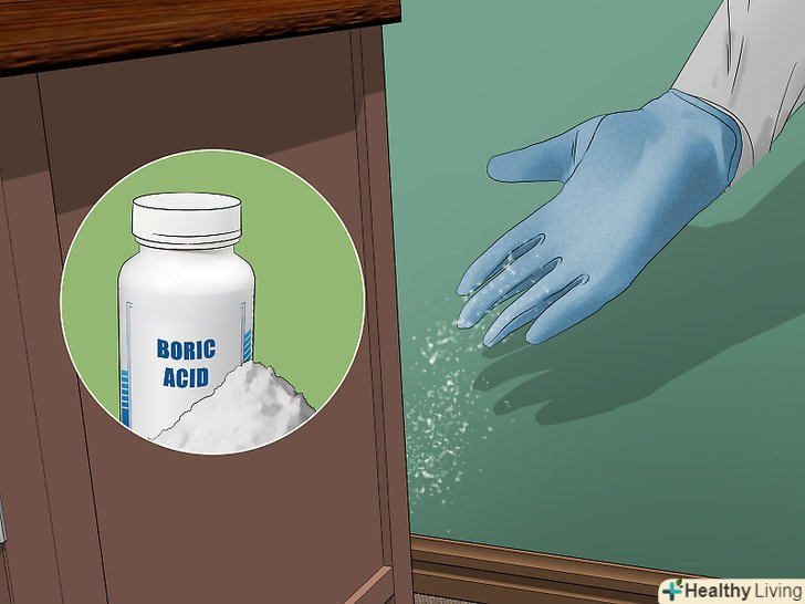 Посипте важкодоступні місця борною кислотою. якщо вам складно дістатися до будь-яких заражених місць, наприклад горища або щілин в стінах, рівномірно посипте їх борною кислотою. Можна також приготувати з борної кислоти спрей: для цього розведіть одну столову ложку (4,2 грама) борної кислоти в двох склянках (480 мілілітрах) гарячої води. Розмішайте воду, щоб кислота повністю розчинилася, перелийте її в пластиковий пульверизатор і обприскати важкодоступні щілини.- Борна кислота має відбілюючу дію, тому не наносите її на темні матеріали.