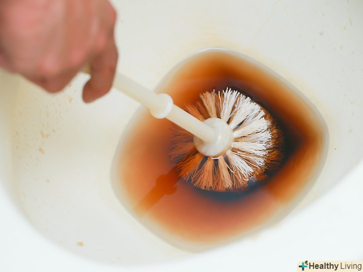 Використовуйте щітку. хороша старомодна щітка для очищення туалету допоможе, якщо звичайний змив не прибирає плями. Механічна дія щіткою (або аналогічним матеріалом) допоможе послабити і вивести стійкі плями зі стін чаші, після того, як ви промили їх колою. Якщо ви гидливі, надіньте рукавички, а після очищення обов'язково вимийте руки.- Для отримання найкращих результатів, протріть до і після використання кока-коли. Іншими словами: