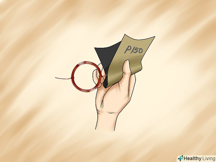 Оголіть підтримуючі дроти. Візьміть котушку і зітріть всю ізоляцію на одному з підтримуючих проводів. На іншому дроті зітріть тільки половину ізоляції, щоб вона торкалася до опори, коли котушка буде найближче до магніту. Якщо ви хочете підправити зачистку, ви можете просто нанести нове покриття перманентним маркером (нанесення покриття перманентним маркером дуже важливо, оскільки це розриває магнітне поле і зупиняє обертання котушки).