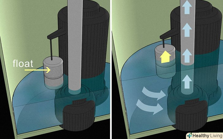 Перевірте позицію поплавця. конструкція поплавка може відрізнятися для різних типів насосів, але яка б вона не була, важливо щоб нічого не заважало руху поплавка, який повинен вільно підніматися і опускатися в міру зміни рівня води. У міру наповнення дренажного колодязя, поплавок повинен вільно підніматися до рівня, при якому включається насос, а потім опускатися назад, не застряючи між насосом і стіною гільзи. Зазвичай це досягається розміщенням насоса по центру гільзи, але все одно краще зайвий раз переконатися в правильній установці насоса.- Встановіть зворотний клапан. він необхідний для утримання води в трубі після зупинки насоса, щоб уникнути нескінченних циклів включення і виключення насоса. Велика частина таких насосів продається в комплекті з хомутами і сполучними втулками, на яких вказано напрямок руху води. Встановіть клапан на вертикальній частині труби і затягніть Хомути викруткою.