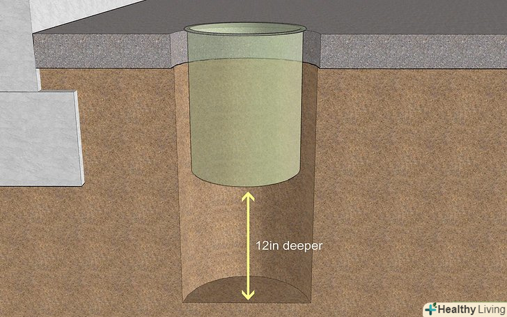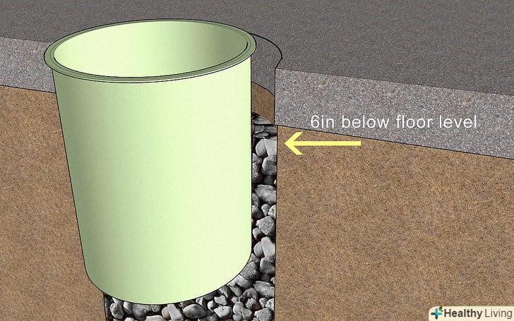 Вирийте дренажний колодязь. глибина колодязя повинна бути як мінімум на 30 сантиметрів більше, ніж висота гільзи насоса. Для виносу сміття скористайтеся 15 літровими відрами.- Додайте або замініть деяку кількість крупного гравію на дні дренажного колодязя так, щоб гільза насоса виявилася врівень з підлогою. Цей гравій забезпечить хороший дренаж, а також направить воду в дренажний колодязь для відкачування (і тоді вона не буде просочуватися в іншому місці вашого підвального приміщення).