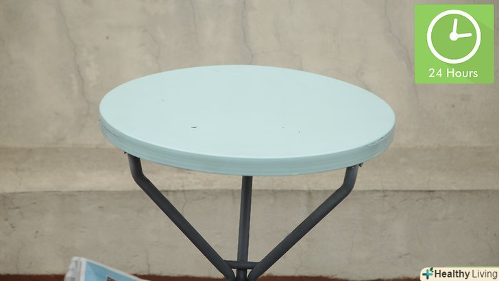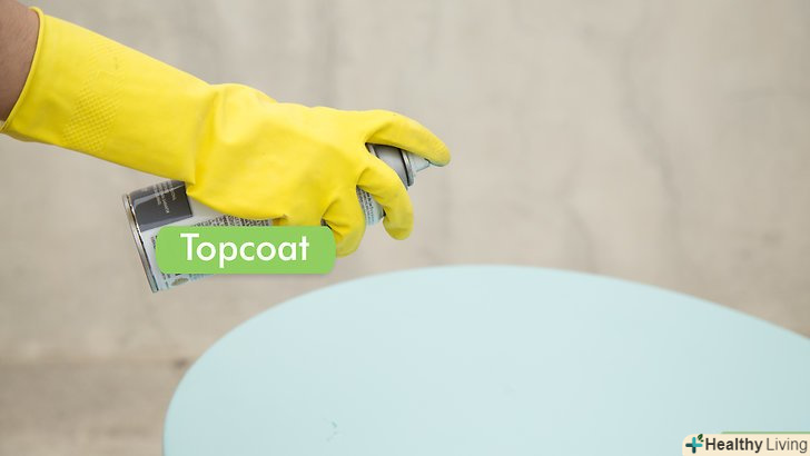 При бажанні нанесіть оздоблювальне покриття. зазвичай аерозольну фарбу не потрібно додатково закріплювати, якщо тільки ви не плануєте часто братися за пофарбований предмет. Однак при бажанні ви можете нанести прозоре покриття. Розпиліть його тонким шаром на пофарбований і повністю висохлий предмет. Дайте висохнути протягом як мінімум 24 годин і, якщо хочете, нанесіть другий шар. [16]- Не торкайтеся до предмета і не переміщайте його, поки покриття повністю не висохне.