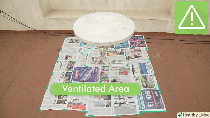 Підготуйте робочу область. при використанні аерозольних фарб завжди необхідно працювати на вулиці або в добре вентильованому місці. Аерозольна фарба не закріпиться належним чином, якщо на вулиці занадто холодно або волого, тому почекайте, поки вологість не знизиться нижче 65%, а погода не стане сонячною і, принаймні, злегка теплою.- Розстеліть газети, ганчірки або поліетилен і притисніть камінням, щоб вони не розліталися від вітру. Переконайтеся, що ви закрили достатню територію, інакше ви можете забарвити бризками свій сад або доріжки в ньому.