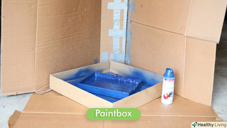 Підготуйте коробку для фарбування дрібних предметів. якщо ви фарбуєте маленький предмет, його буде зручно поставити в коробку, що лежить на боці. Так ви будете розпорошувати фарбу в коробку, а значить, зменшиться ймовірність забруднити все навколо. Можете встановити предмет в коробці на шматок картону або обертову підставку: так його буде легше повертати в процесі фарбування. [2]- Очистіть поверхню, що фарбується. фарба погано фіксується на запорошених або брудних поверхнях. Витратьте кілька хвилин, щоб стерти будь-які забруднення з поверхні, над якою ви будете працювати. [3]