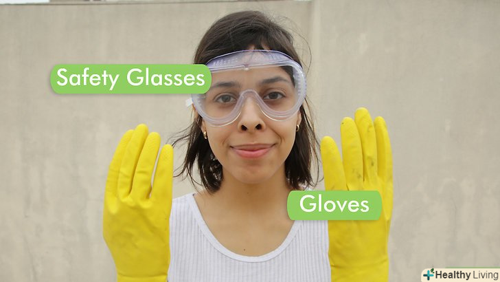 Одягніть Захисне спорядження. Перед тим як приступати до роботи з аерозольною фарбою, надіньте респіратор, захисні окуляри і одноразові рукавички. Окуляри захистять ваші очі від бризок фарби, а рукавички і респіратор необхідні через токсичність аерозольних фарб. Одягніть їх перед тим як братися за фарбу. [5]- Краще витратити гроші на респіратор, ніж потім лікуватися від проблем з дихальними шляхами. [6]