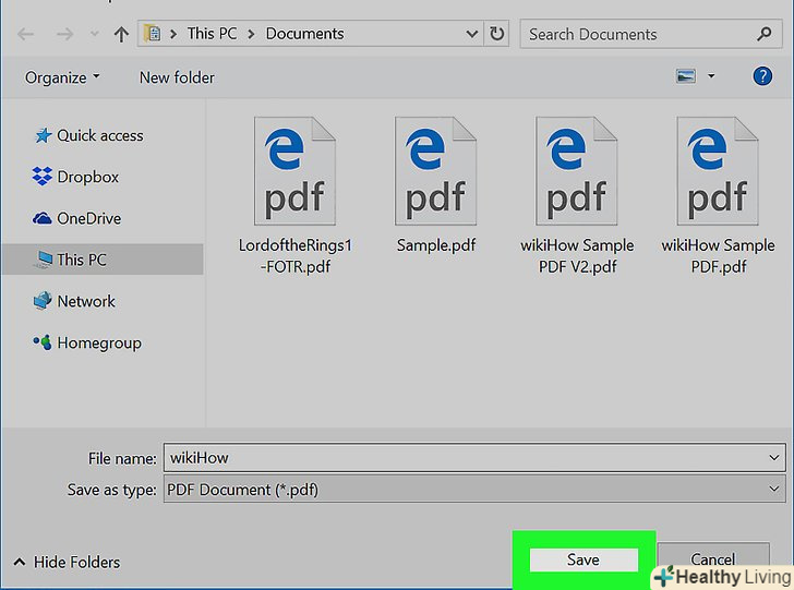 НатиснітьЗберегти.ця опція знаходиться в нижньому правому куті вікна. PDF-файл буде створений і збережений у зазначеній папці.