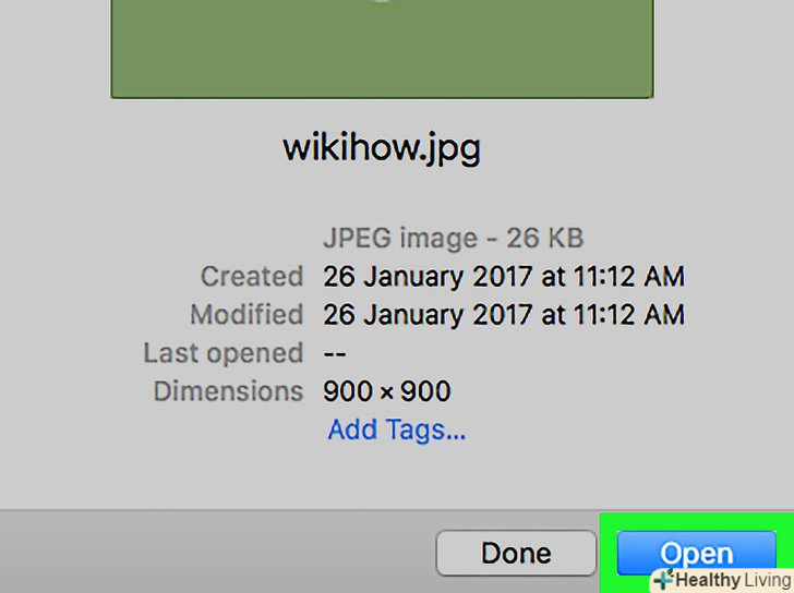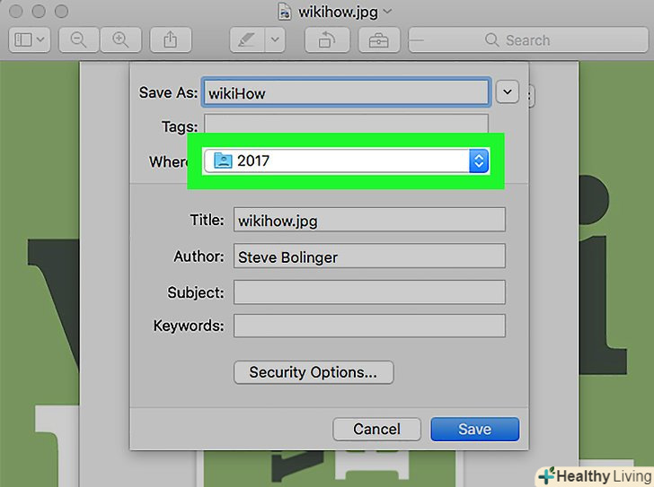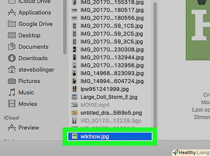 Виберіть зображення для перетворення в PDF-файл.у вікні, перейдіть в папку з картинками, а потім клацніть по потрібному зображенню.[2]- Щоб вибрати кілька зображень, затисніть⌘ command і клацніть по кожній потрібній картинці.