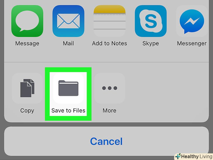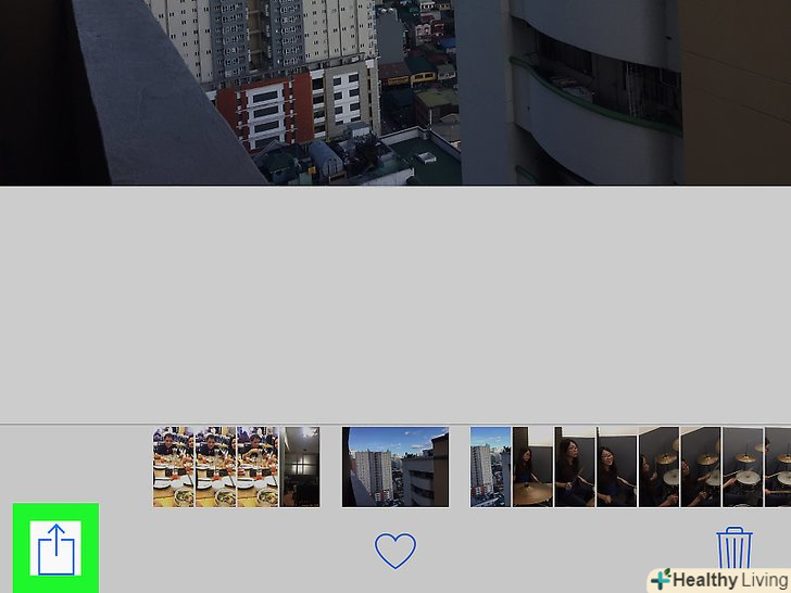 Натисніть на значок «Поділитися». він знаходиться в правому верхньому куті екрану. Відкриється меню в нижній частині екрана.