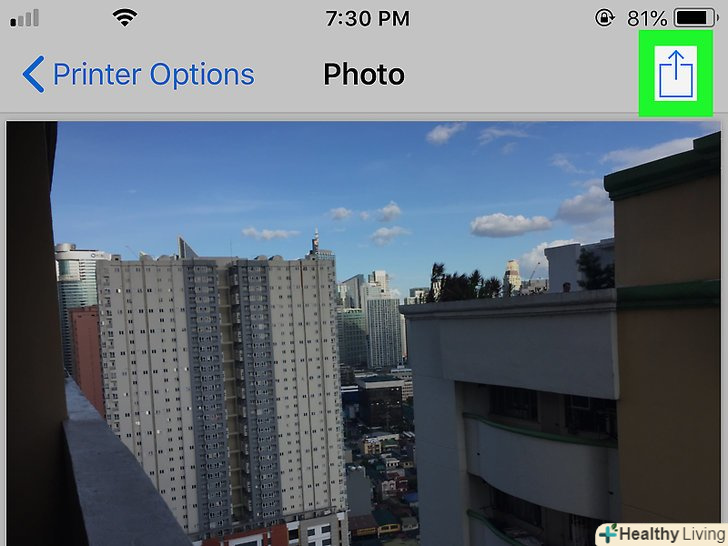 Перегляньте (попередньо) PDF-файл. у нижній частині сторінки "параметри принтера" збільште вікно (розсунувши пальці) попереднього перегляду, щоб переглянути фото в PDF-форматі.[3]- Якщо iPhone оснащений функцією "3D Touch", натисніть на вікно попереднього перегляду, щоб відкрити його на новій сторінці, а потім натисніть і утримуйте сторінку, щоб переглянути фото у форматі PDF.