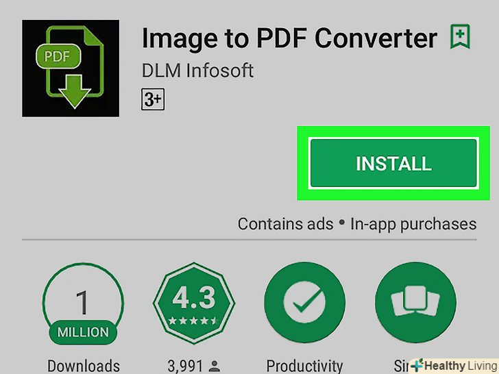Скачайте безкоштовний додаток для конвертування зображень у формат PDF. Запустіть додаток Play Маркет, а потім виконайте такі дії: