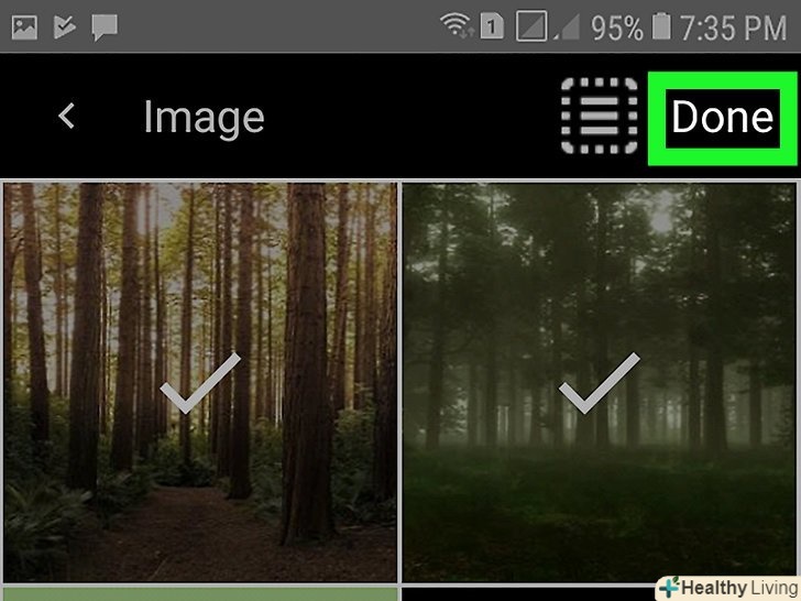 Торкніться✓. ця опція знаходиться в правому верхньому куті екрану. Фотографії будуть додані в список, який буде перетворений в PDF-файл.