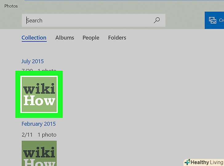 Виберіть зображення для перетворення в PDF-файл. клацніть по потрібному зображенню, щоб відкрити його.- Якщо PDF-файл буде включати кілька зображень, натисніть «Вибрати» у верхній правій частині вікна «фотографії», а потім клацніть по кожній потрібній фотографії.
