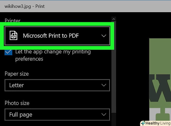 Виберіть принтер " друк в PDF (Майкрософт)".зробіть це в випадаючому меню "Принтер".[1]
