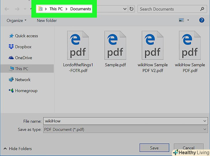 Виберіть папку для збереження PDF-файлу. клацніть по потрібній папці в лівій частині вікна.