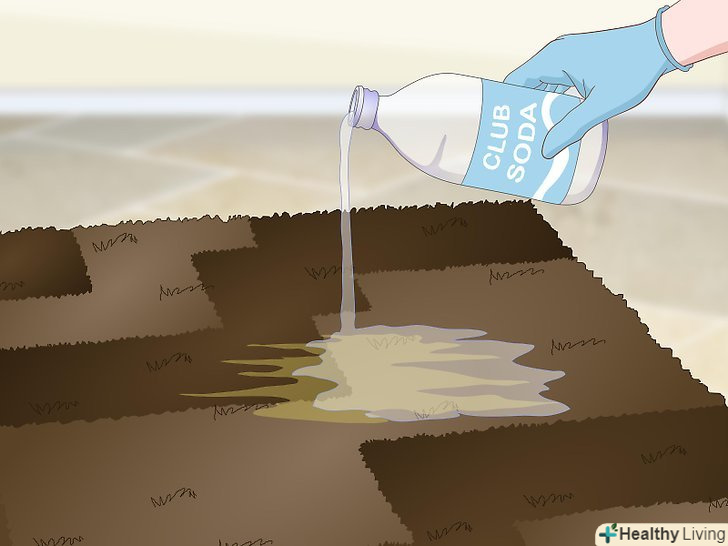 Полийте пляму газованою водою. не наливайте багато води за раз, щоб килим не став занадто мокрим. Не поспішаючи змочіть все пляма водою, щоб вона випустила бульбашки газу і вбралася в килим. Після того як ви покриєте все пляма водою, почекайте близько 10-15 хвилин, щоб вона проникла глибше. [10]- Газовану воду можна придбати в будь-якому продуктовому магазині.
