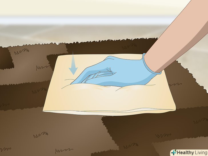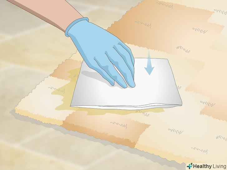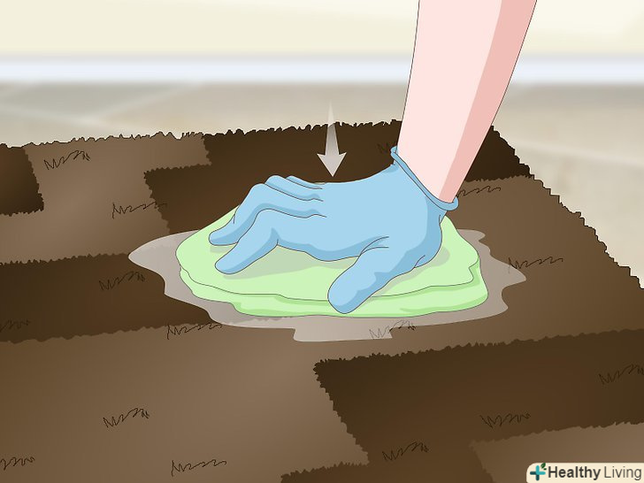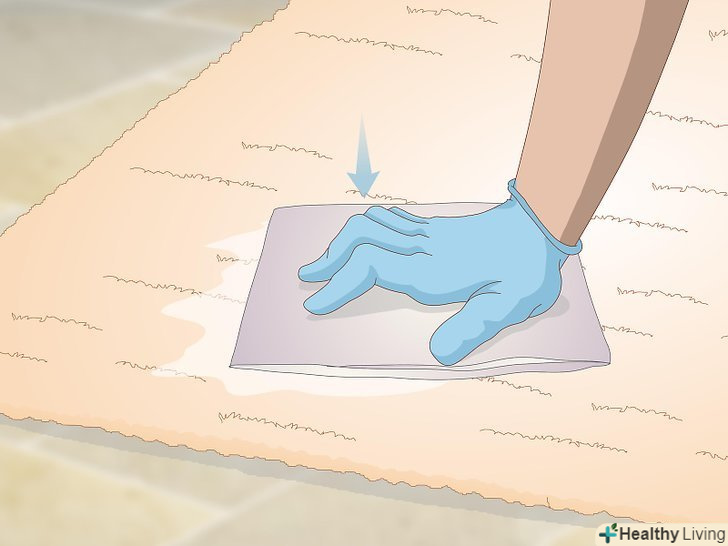 Промокніть килим, щоб видалити зайвий оцет. візьміть стару ганчірку або губку і притисніть до плями, щоб вона ввібрала рідину. Промокніть весь забруднену ділянку, щоб він не був занадто мокрим. Після цього відразу ж виперіть використану ганчірку або викиньте її. [3]- Якщо ви не хочете, щоб на ваші руки потрапив оцет або сеча, надіньте відповідні рукавички.