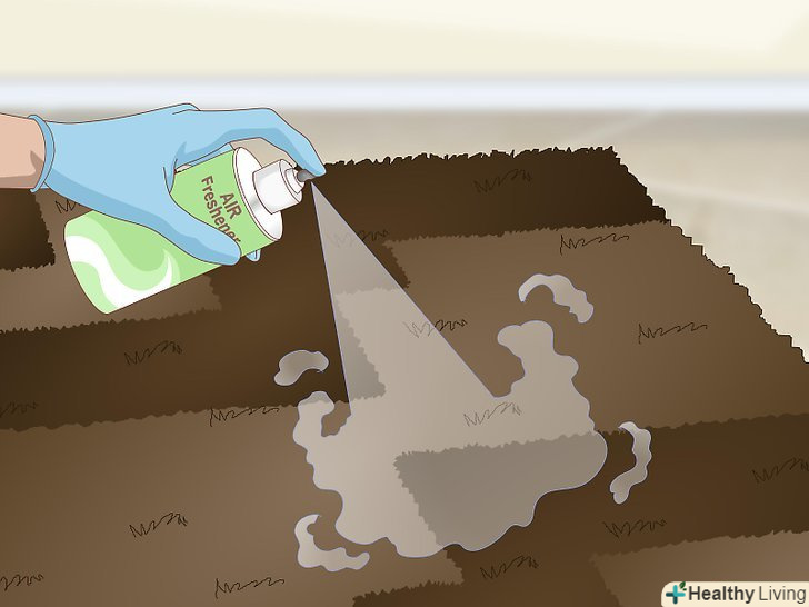 Побризкайте на килим освіжувачем повітря, щоб надати йому приємний запах. хоча за допомогою газованої води і вдасться видалити сечу, сліди неприємного запаху все ж можуть залишитися. Побризкайте на килим своїм улюбленим освіжувачем повітря, щоб повністю позбутися від залишкового запаху. Не шкодуйте освіжувач повітря і через кілька годин перевірте, чи повністю ви очистили килим від сечі. [13]- Краще використовувати такий освіжувач повітря, який усуває запахи, а не маскує їх, щоб знищити виробляють запах бактерії.