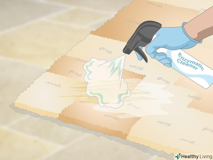Нанесіть ферментний миючий засіб прямо на пляму. пляшку з ферментним миючим засобом можна придбати в найближчому супермаркеті або магазині господарських товарів. Піднесіть пляшку до плями на відстань 7-10 сантиметрів і побризкайте, щоб килим намок. [15]- У багатьох зоомагазинах продаються ферментні чистячі засоби, спеціально призначені для видалення собачої сечі.