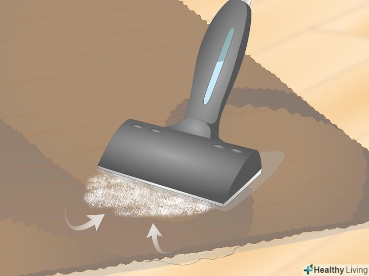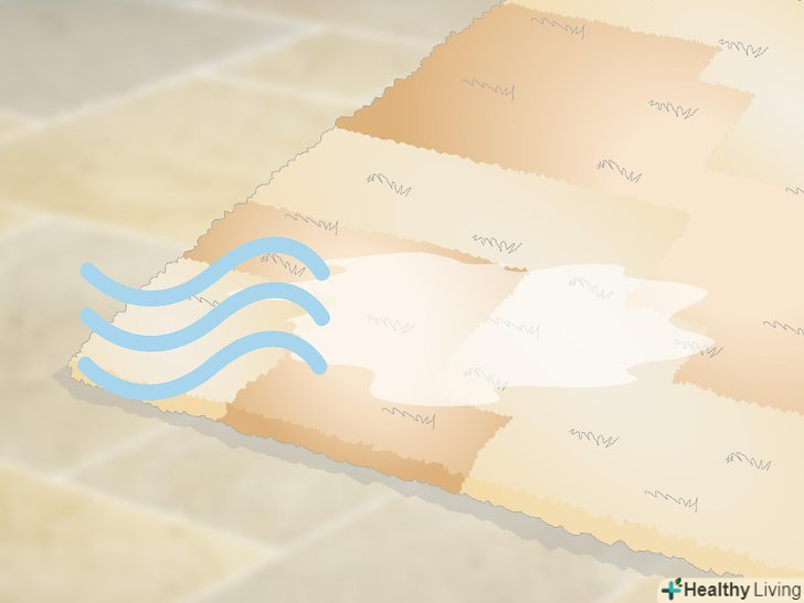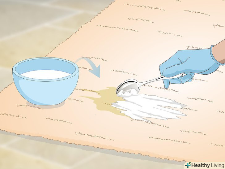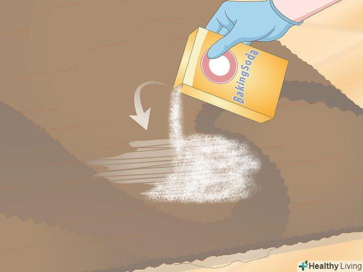 Посипте розчин оцту харчовою содою, щоб позбутися від запаху. нанесіть на всю забруднену поверхню тонкий шар харчової соди і втисніть її в килим ганчіркою. Зачекайте, поки сода вбере залишилася в килимі вологу і усуне запах. В результаті на килимі утворюється тонка скоринка. [4]- Якщо ви побоюєтеся, що оцет і харчова сода змінять колір килима, перевірте їх дію на невеликому прихованому ділянці килима, перш ніж наносити на пляму.
