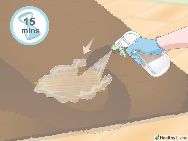 Розпиліть розчин на пляму сечі і почекайте 15 хвилин, щоб він вбрався. піднесіть пляшку до килима на 7-10 сантиметрів і натисніть на курок, щоб нанести розчин на килим. Покрийте розчином все пляма, щоб як слід змочити килим, і почекайте 15 хвилин, поки він вбереться. [2]- Оцет добре видаляє як сухі, так і вологі плями сечі.