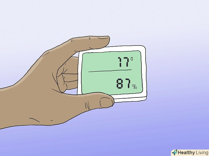 Скористайтеся гігрометром, щоб отримати точні показники рівня вологи в кімнаті або ділянці, який ви хочете осушити.- Гігрометр можна купити в будь-якому будівельному магазині. Він надасть вам дані про Вологість в конкретній кімнаті в процентному показнику.