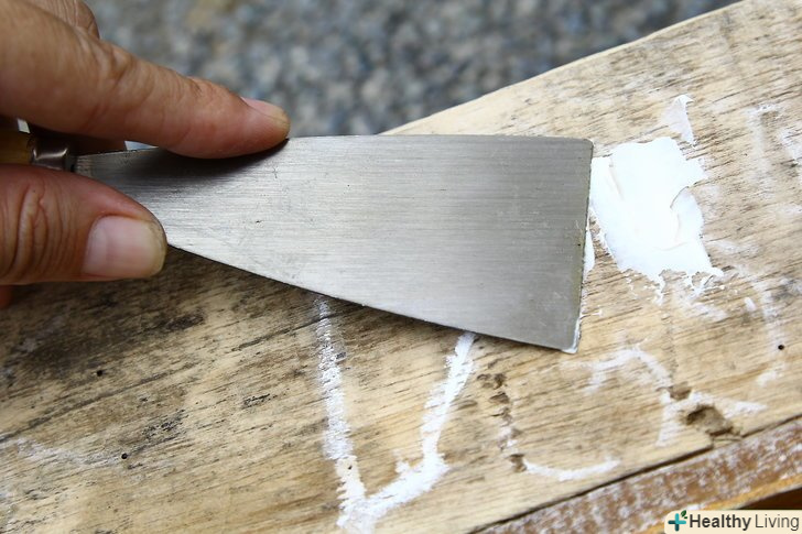 Заповніть всі вм'ятини і глибокі вибоїни якісної замазкою для дерева. заповніть всі нерівності гнучким шпателем. На цьому етапі краще перекласти замазки, ніж не доповісти. Після того, як замазка висохне і затвердіє, відшліфуйте її.- Для невеликих або дрібних подряпин використовуйте звичайну шпаклівку. Перш ніж шліфувати замазку, дайте їй повністю висохнути.