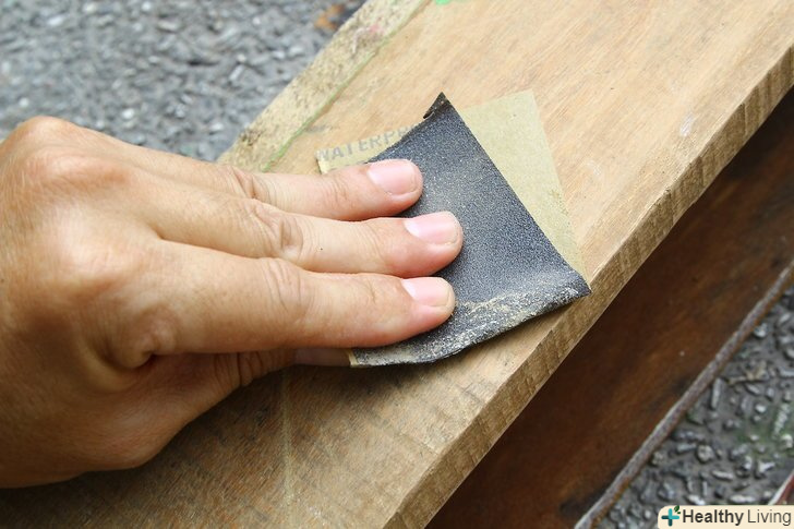 Почніть шліфувати поверхню деревини грубою шкіркою і закінчите дрібним наждачним папером. спочатку використовуйте шкірку з зернистістю від 80 до 100 грит, щоб видалити всі залишки фарб. Завершити роботу слід зі шкіркою зернистістю 150 грит або більше, щоб розгладити поверхню для грунтовки. Шліфуйте наждачним папером у напрямку волокон дерева, а не проти них.- Орбітальна Ручна шліфувальна машина стане вашим найкращим другом в ході цього процесу, особливо в тому випадку, якщо ви плануєте пофарбувати велику поверхню. Якщо у вас немає орбітальний шліфувальної машини або піскоструминного апарату, то ви можете попрацювати дерев'яною колодкою, хоча для цього буде потрібно набагато більше зусиль і часу.
