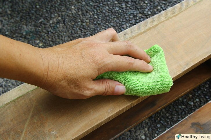 Змочіть ганчірку і очистіть тирсу, бруд і пісок з поверхні деревини. якщо у вас є пилосос, то пропилососьте поверхню, яка потребує фарбування, потім пройдіться по ній мокрою ганчіркою. Якщо під рукою немає пилососа, витріть бруд сухою ганчіркою, потім тільки очистіть вологою ганчіркою.- Фарба або грунт не будуть триматися на брудній поверхні. Фарба лягає краще на очищену поверхню.