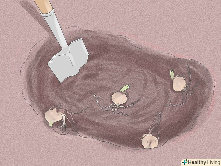 - Для оптимального дренажу створіть підняту клумбу з грунту для посадки в горщики. Клумба повинна бути не менше 13 сантиметрів над поверхнею землі і досить широка, щоб правильно посадити цибулини. Це особливо добре робити на ділянці, який не дуже швидко висихає після дощу.