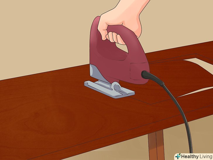 Виріжте фанеру за необхідними вам розмірами. якщо вам необхідно зробити робочу поверхню, щільно вписується в певне місце, то можна відрізати фанеру трохи більшу за розміром, а потім сточити або обрізати зайве. Це особливо важливо при вписуванні в конкретну стіну або між двох стін, які можуть виявитися не настільки рівними (під точним кутом в 90 градусів).