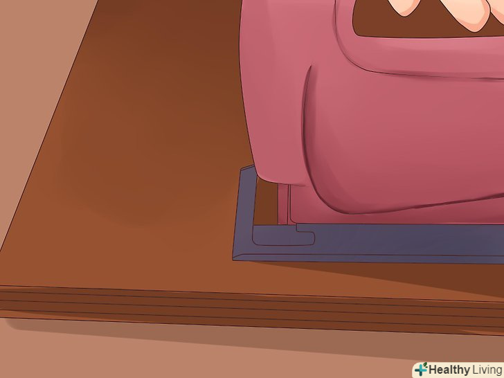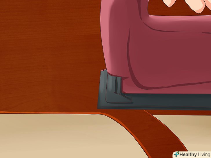 Відріжте ламінат для кромки. якщо ви використовуєте фанеру товщиною 2 см, то вам необхідно взяти кромку шириною 4 см і, як мінімум, на 5 мм довше необхідного. В ідеалі використовувати фабричні куточки, які ви подоткнете під шар верхнього ламінату, однак, в іншому випадку вам буде потрібно відрізати кромку з запасом для подальшої точної обрізки на кутах.