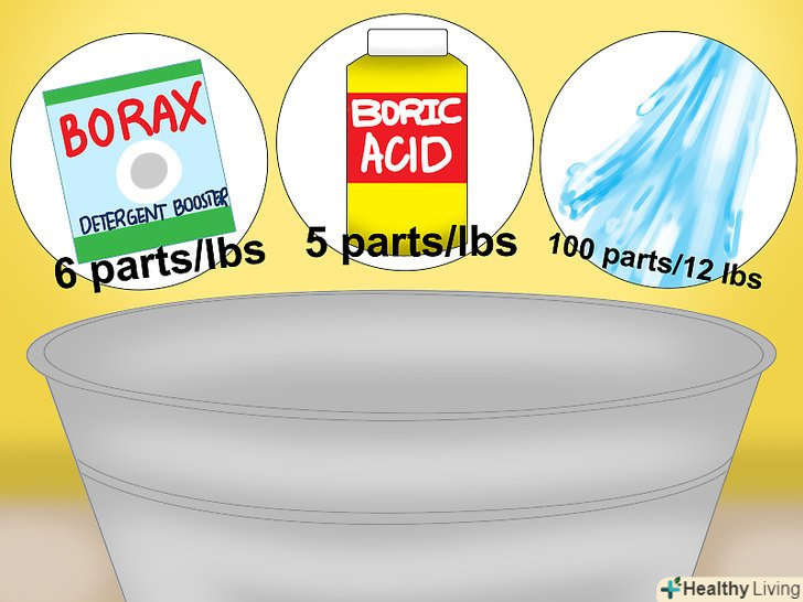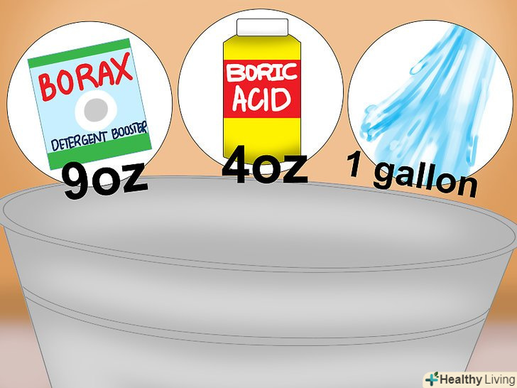 Змішайте у великій ємності 255 г порошку бори і 120 мл борної кислоти в 3,8 л води.