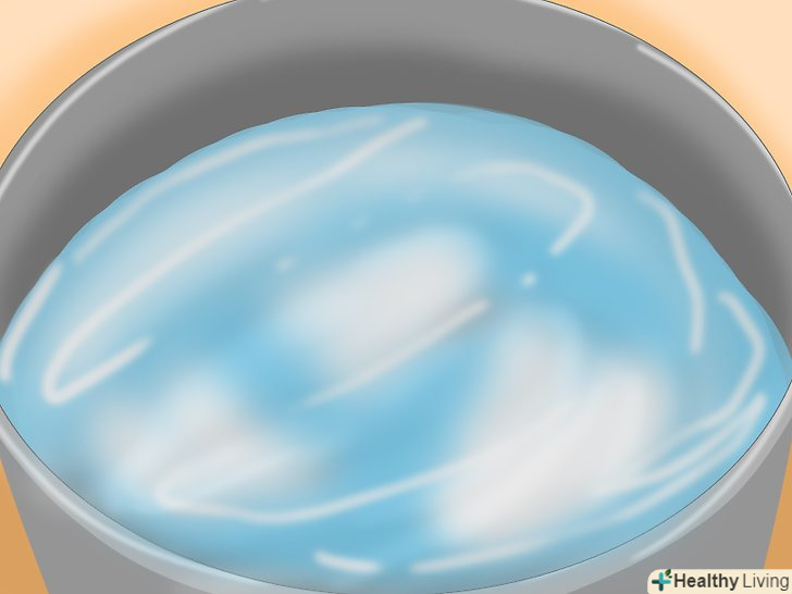 У великій каструлі змішайте 453 г сульфату алюмінію з 470 мл гарячої води з крана. для цього підберіть каструлю, в якому буде достатньо місця для тканини.