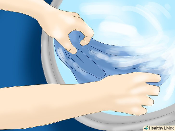 Витягніть повністю мокру тканину. покладіть її в герметичну пластикову корзину і винесіть на вулицю. Повісьте на мотузку, підлогову вішалку або покладіть на кошик.