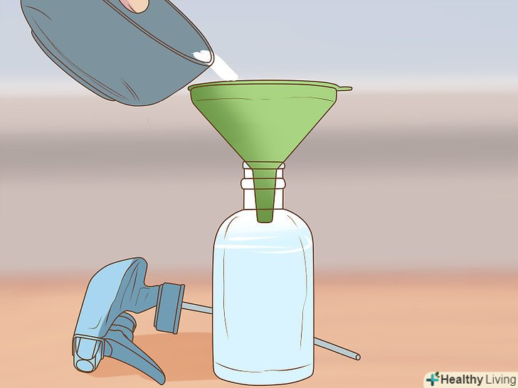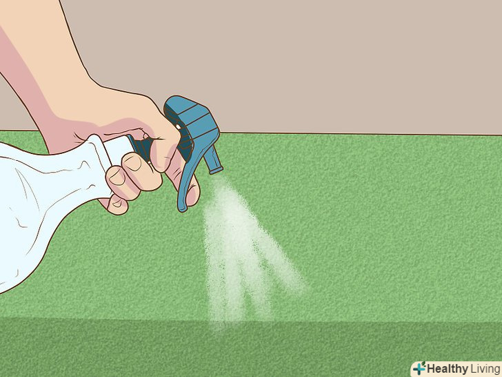 Використовуйте пляшку з пульверизатором, шейкер або подібну ємність для чищення килима. щоб почистити килим або видалити пляму, вам потрібно нанести рівномірний шар миючого засобу на килим. Щоб зробити це, перелийте готову суміш для чищення килимів в пляшку з розпилювачем, або якщо ви використовуєте суху суміш, пересипте її в шейкер. Завдяки цьому Вам вдасться рівномірно покрити килим шаром миючого засобу.- Добре перемішайте готовий засіб, перед тим як переливати або пересипати його в обрану ємність.